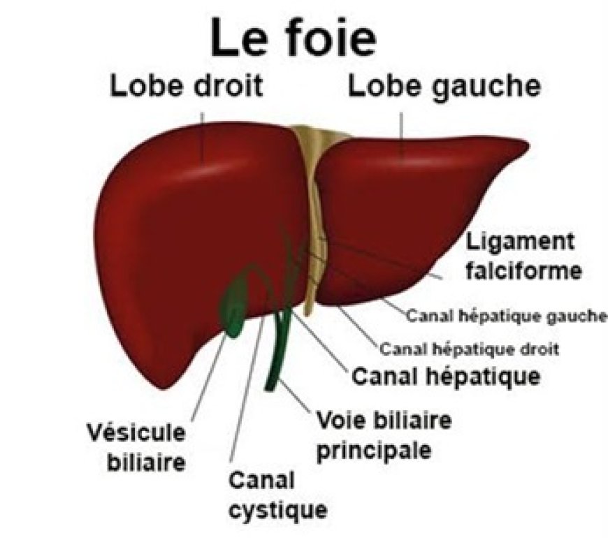 Le foie est le plus grand organe interne du corps humain, situé dans la partie supérieure droite de l'abdomen.